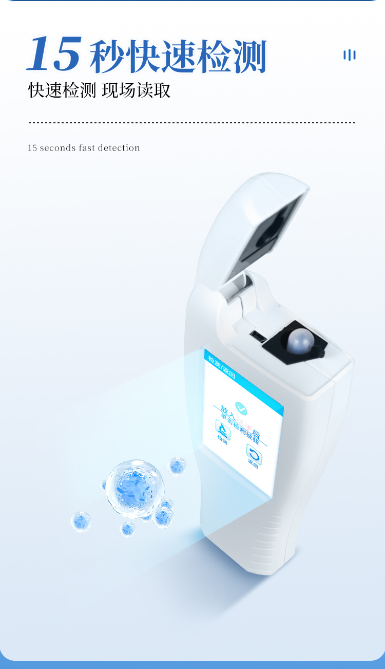 该设备为全新升级产品,大屏幕触摸显示屏,代替传统按键。操作采用生物化学反应方法检测ATP含量,ATP荧光检测仪基于萤火虫发光原理,利用“荧光素酶—荧光素体系”快速检测三磷酸腺苷(ATP)。ATP拭子含有可以裂解细胞膜的试剂,能将细胞内ATP释放出来,与试剂中含有的特异性酶发生反应,产生光,再用荧光照度计检测发光值,微生物的数量与发光值成正比,由于所有生物活细胞中含有恒量的ATP,所以ATP含量可以清晰地表明样品中微生物与其他生物残余的多少,用于判断卫生状况。